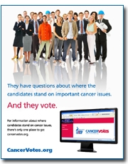 Cancer Votes Campaign -- American Cancer Society Cancer Action Network How can we introduce voters to the concept that how they vote affects cancer issues?